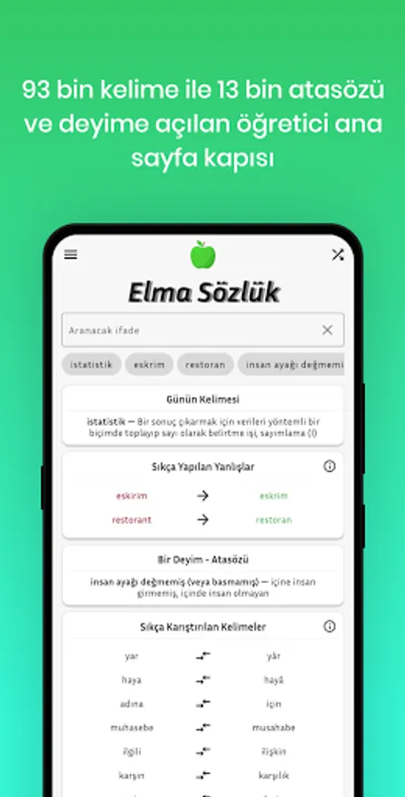 🍏 Apple Dictionary; It is a practical and qualified Turkish dictionary application that allows you to easily access content such as Turkish words, proverbs, idioms, and has been developed by keeping the user experience in the foreground.