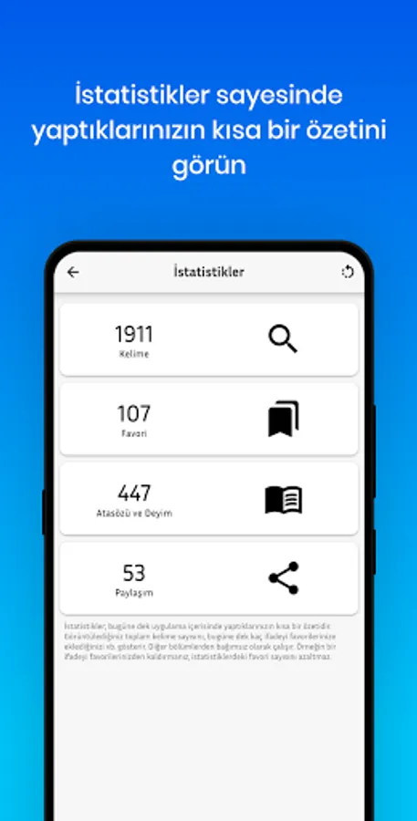 In your in-app interactions, your statistics are also updated instantly. So you can see how many words, proverbs or idioms you have learned to date.