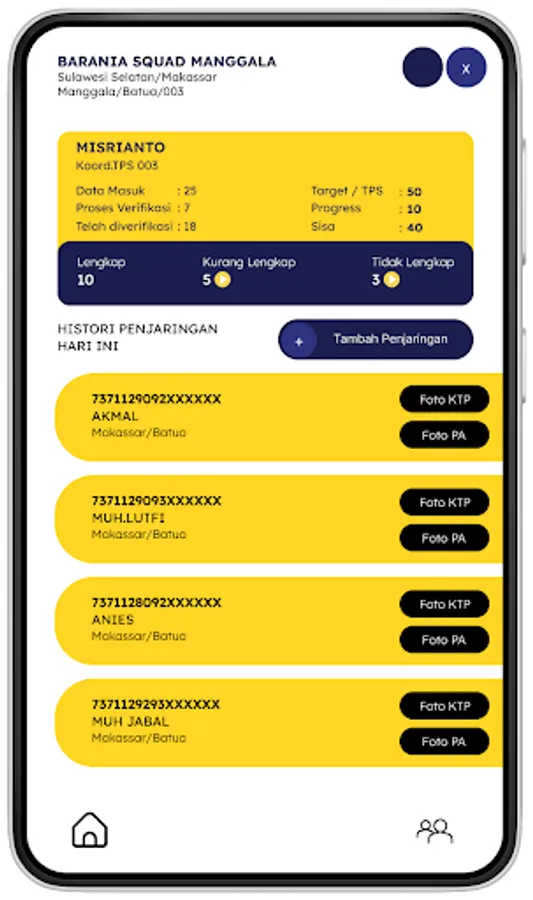 The Yopi Volunteer Special Application is used to input volunteer teams