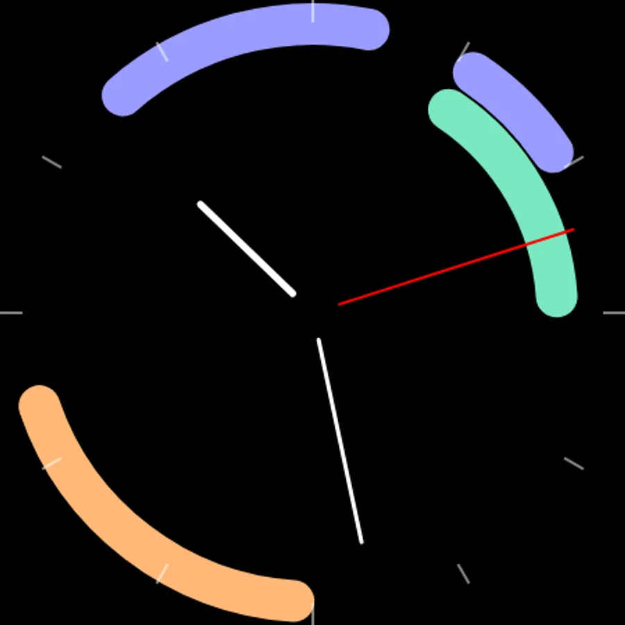 This watch face syncs with your phone and displays calendar entries in little pills on your watch. Thus, you can always keep track of time and upcoming events.