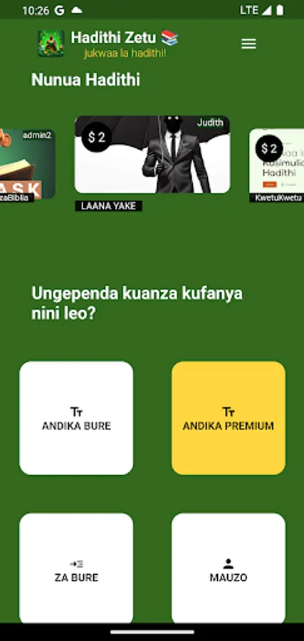 Welcome to the narrative platform, here you will be able to find narratives, novels and various publications in the Kiswahili language!