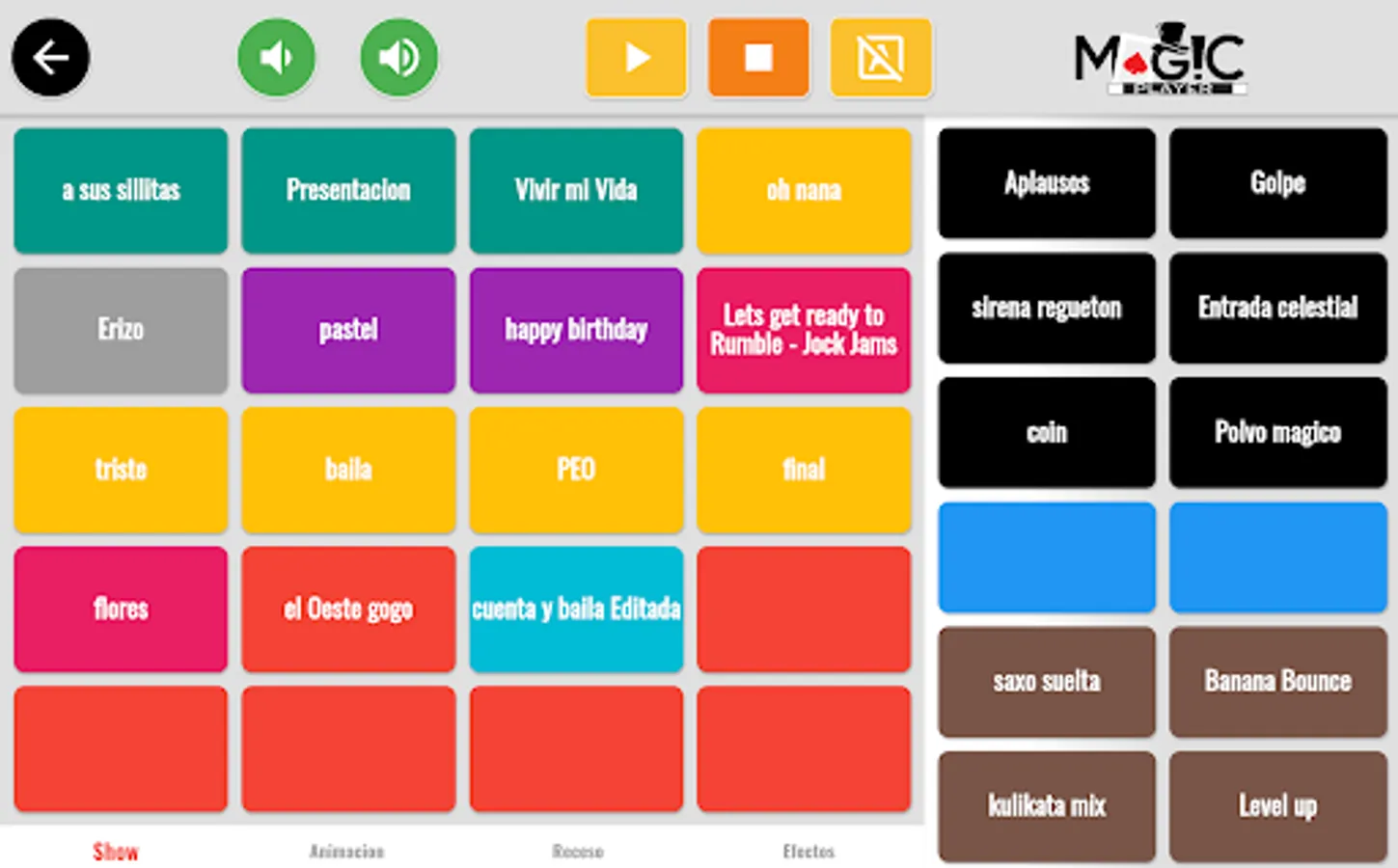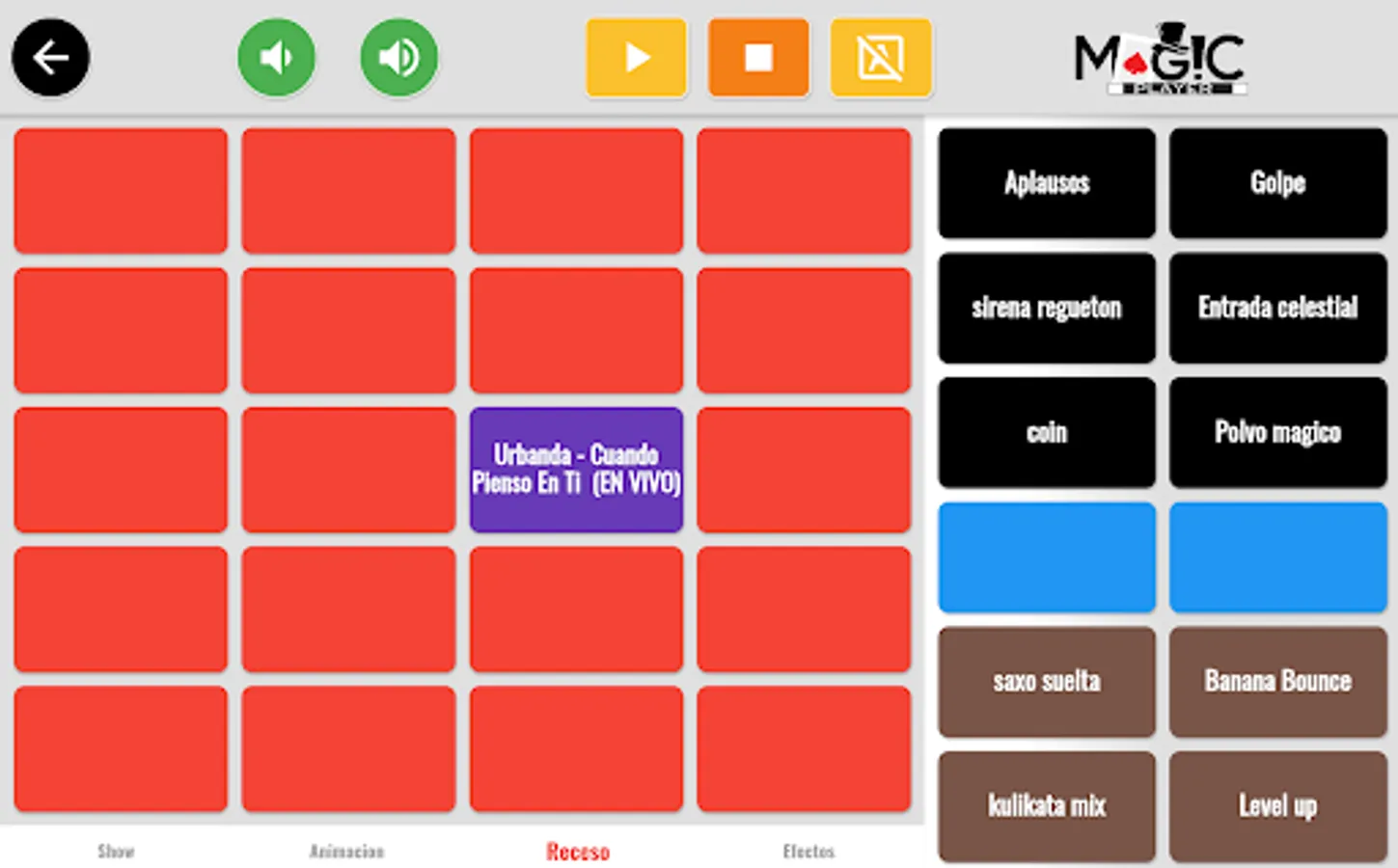 Magic player is an application designed and created to score shows by entertainers, magicians and entertainment artists in a professional way, even without the help of an assistant, with this app there is no limit to having all your musical themes just a touch away.