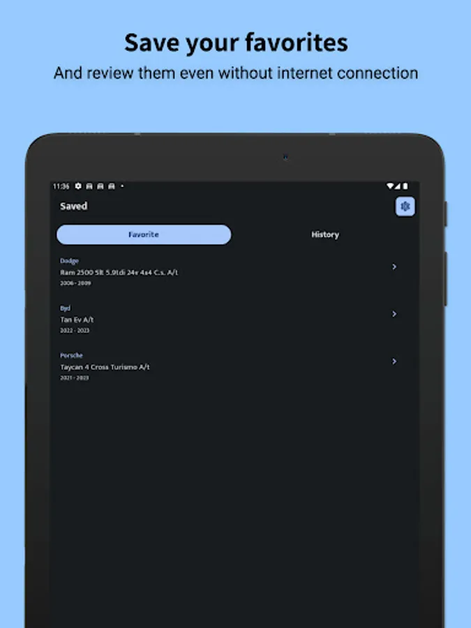 Favoritos e Histórico: Marque seus carros favoritos para acesso rápido e fácil. Além disso, o aplicativo mantém um histórico das pesquisas realizadas, permitindo que você retome facilmente de onde parou.