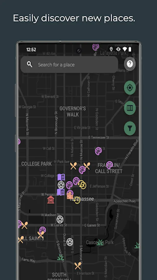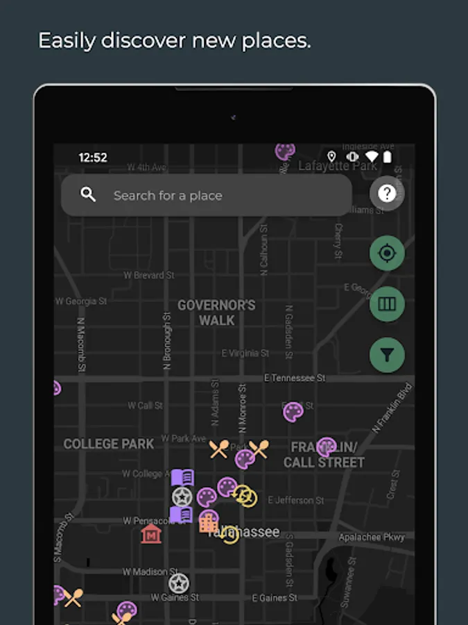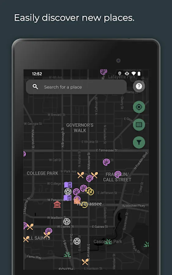 This app creates a space for Tallahassee locals and visitors to discover gems around the city. Using our state of the art mapping features you can discover your favorite places, events, and earn badges by completing Explore! Events.