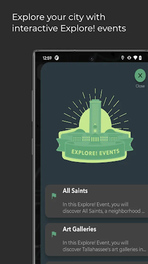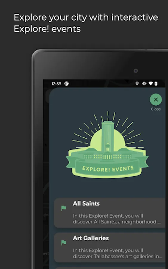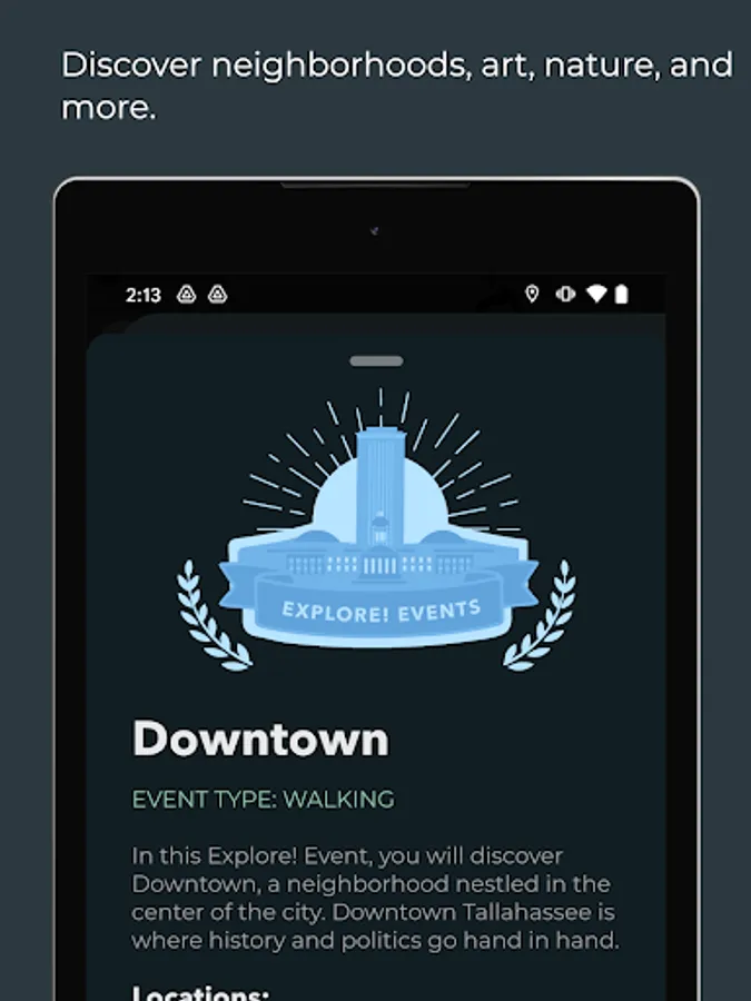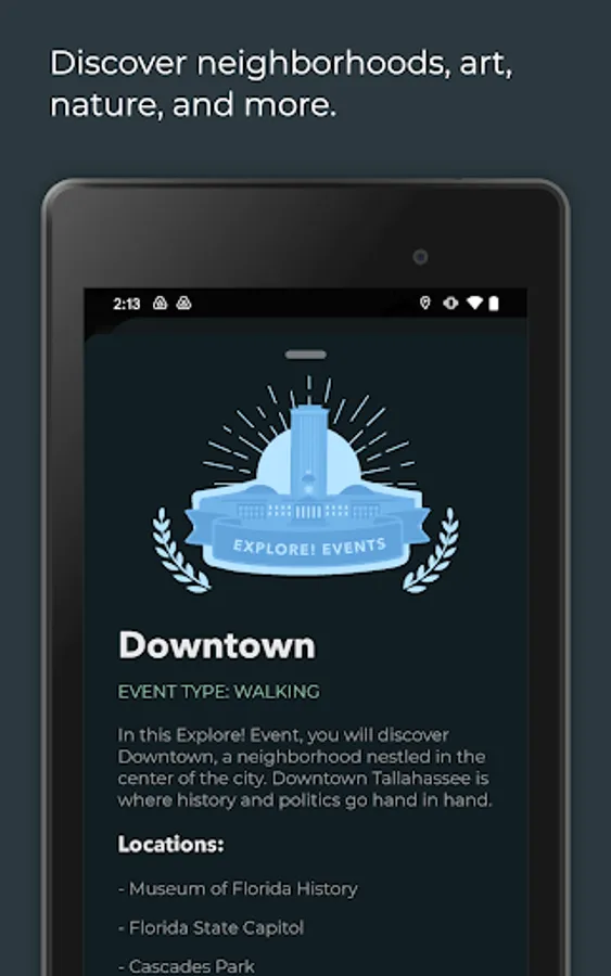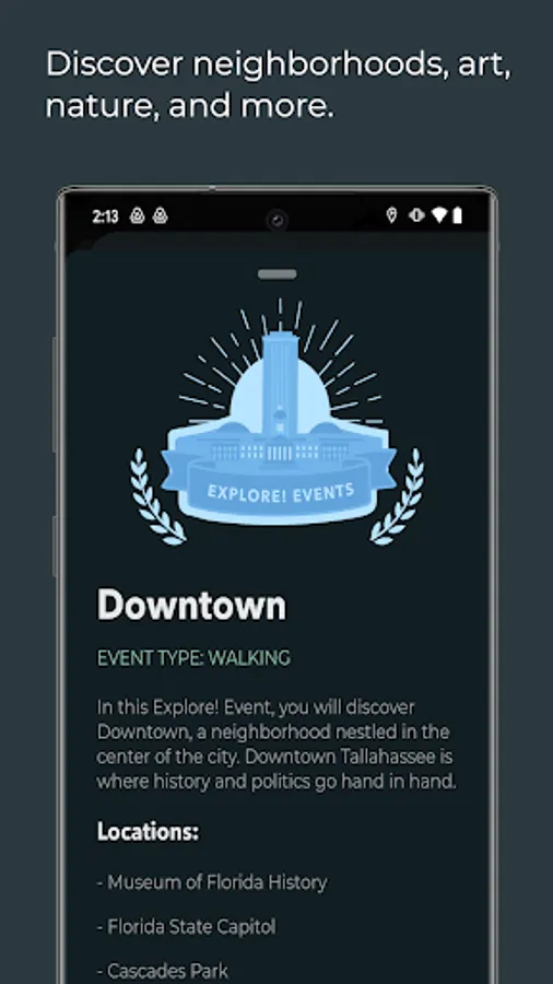 - Explore neighborhoods, art galleries, and nature with interactive Explore! Events