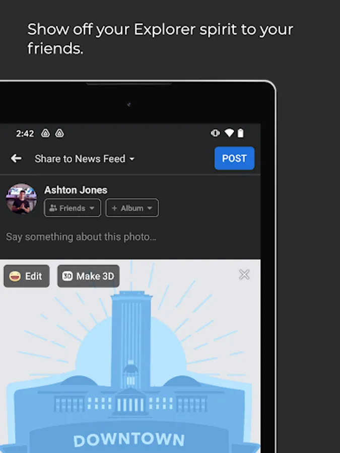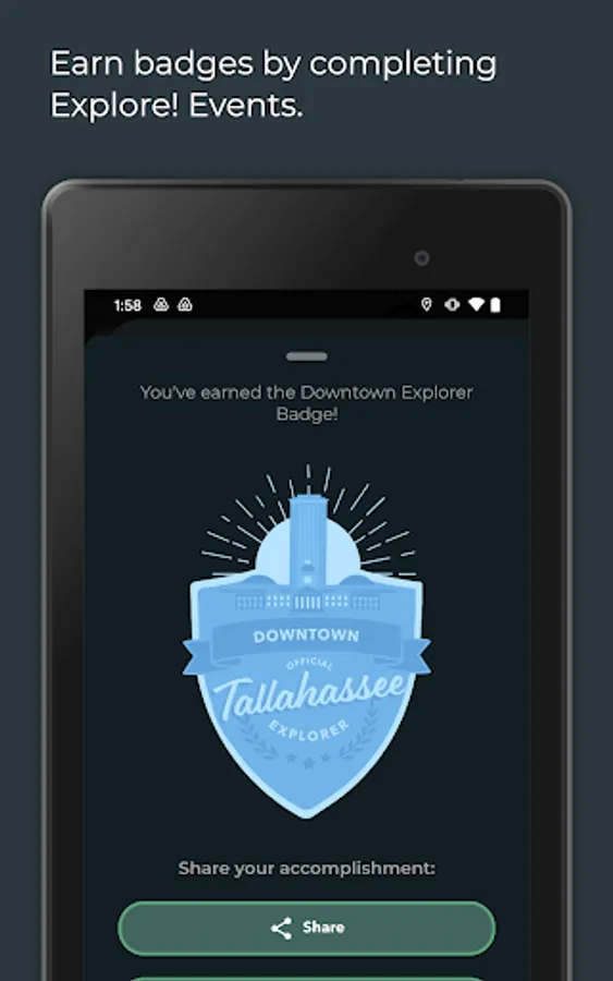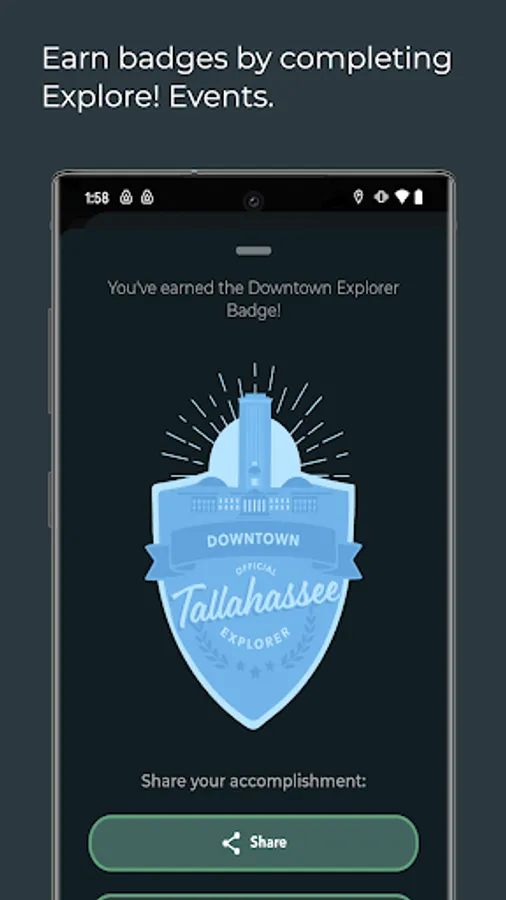 - Earn Explore! Event badges and share them with your friends