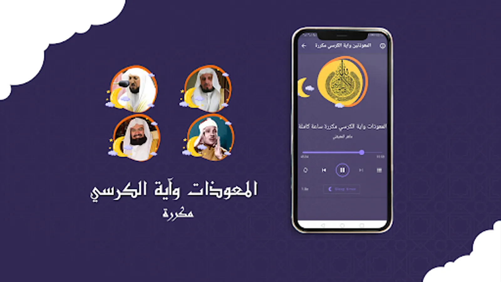 يتيح لكم التطبيق سماع الفاتحة والمعوذات واية الكرسي مكررة من خلال هاتفك المحمول أو جهازك اللوحي بكل سهولة، كما يتميز تطبيق اية الكرسي والمعوذات مكررة بدون نت بكونه متاح بشكل مجاني على المتجر لهواتف الأندرويد.