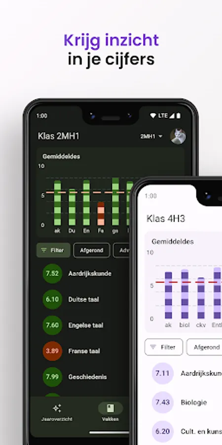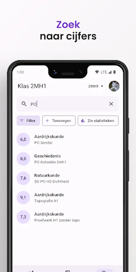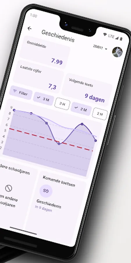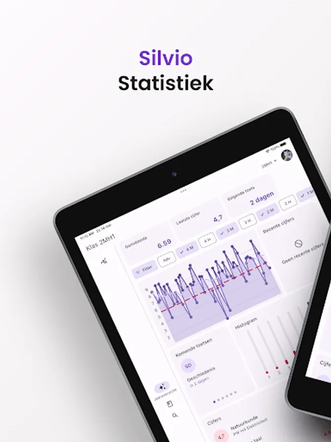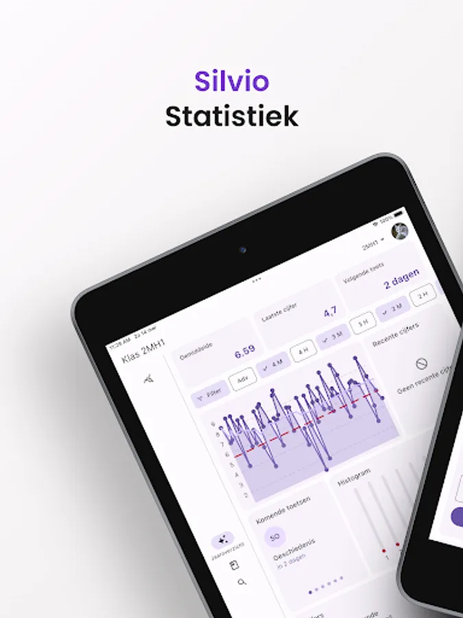 With Silvio it is possible to gain better insight into your figures. There are various statistics about your grades including those from previous school years. Silvio is not affiliated with or part of Iddink Group.