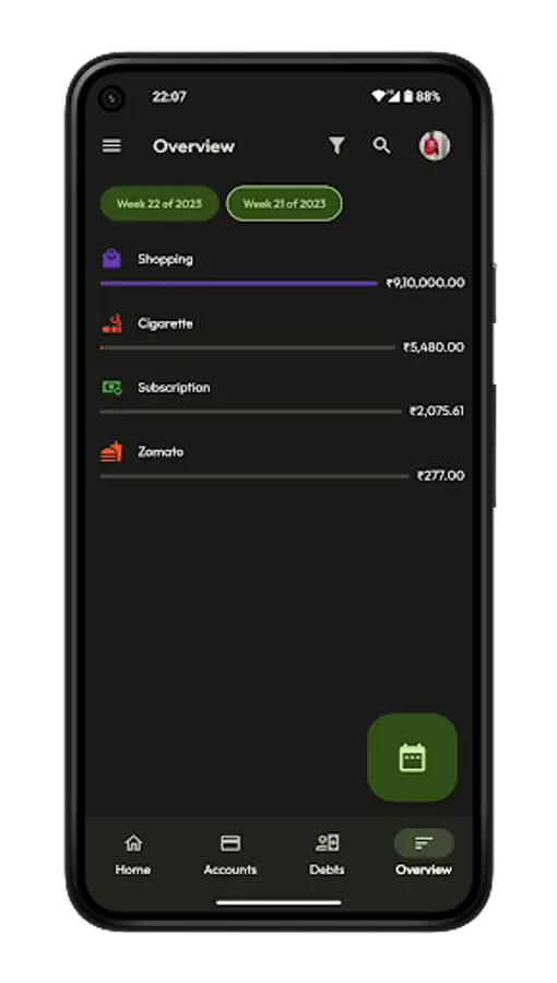 The best Material Design expense manager is crafted just for you. Simple navigation makes it easier to use anytime with no hustle in adding, updating & deleting expenses.