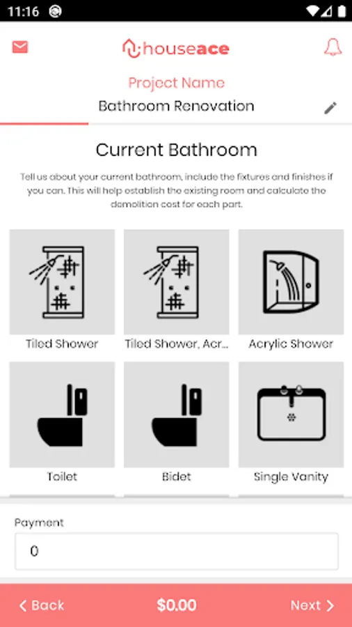 - Select your project & answer a few simple questions about the room & scope. The Houseace quick quote system will generate an accurante quote in a couple of minutes