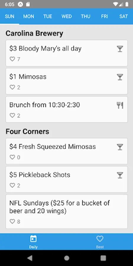 This app compiles recurring daily deals in Chapel Hill, NCl at your favorite bars and restaurants. Like your favorite deals, and let us know of any we may have missed!