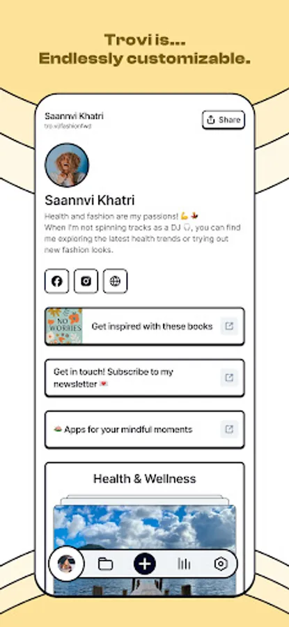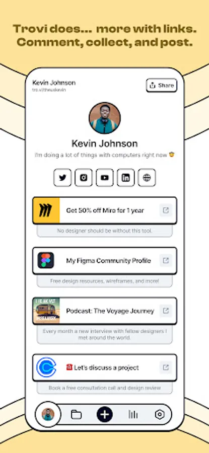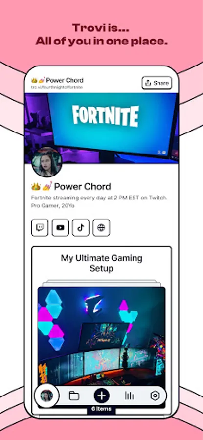 Share your Trovi link in bio with the whole world, or create a quick link to individual items on your profile.