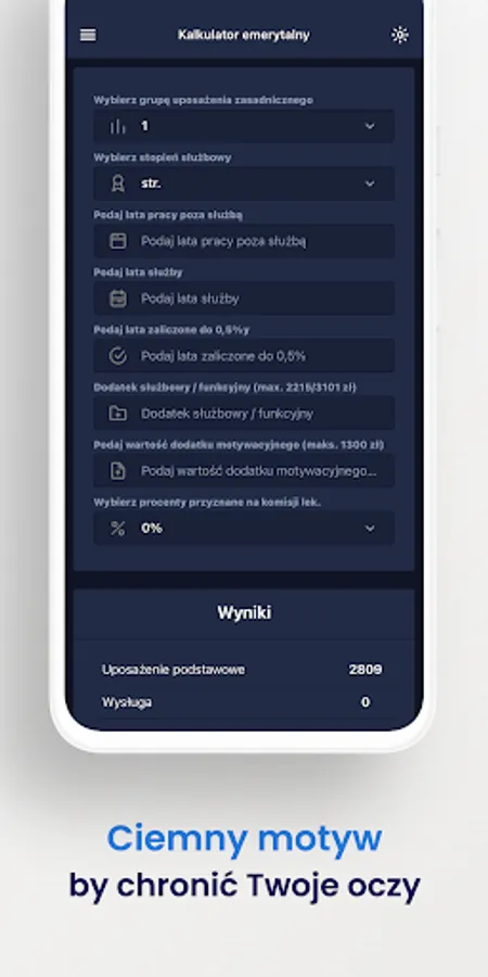The application interface is intuitive and easy to use, which allows firefighters to quickly and easily calculate various parameters related to pension and salary.