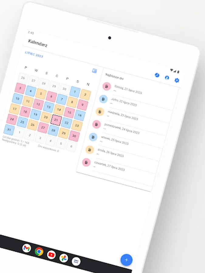 Generating statistics summaries is another important function of the application. Users can access detailed reports on their working time, overtime, travel days, holidays and sick days. This allows you to control your professional activity on an ongoing basis and adjust your plans depending on your needs.