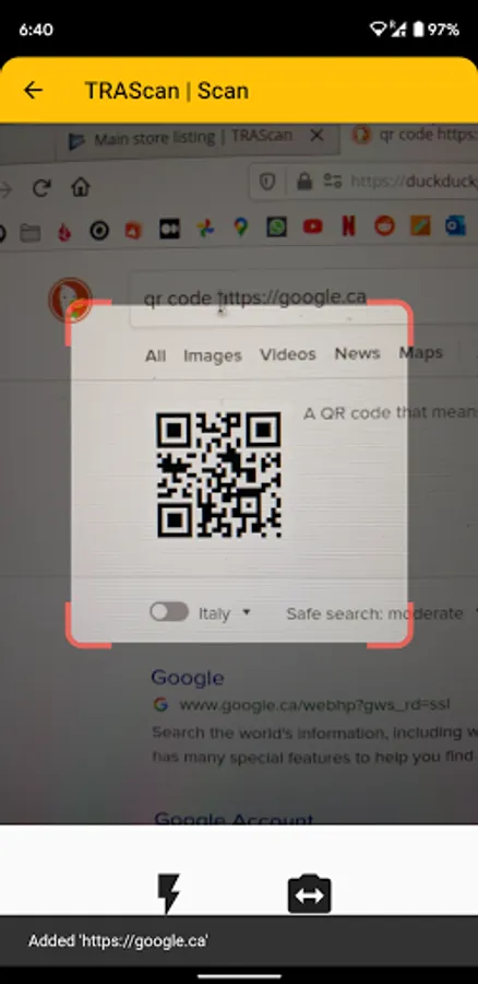 - Press the scan button to scan QR codes and add them to the scans list. Duplicate entries are skipped automatically.