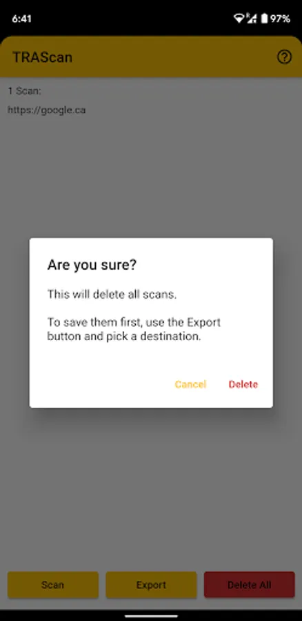 - You may want to use the Export feature to email the list to yourself. Be sure to do this BEFORE exiting the app, as the in-app list is not stored permanently.