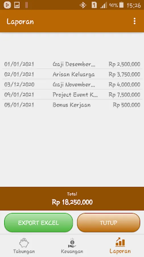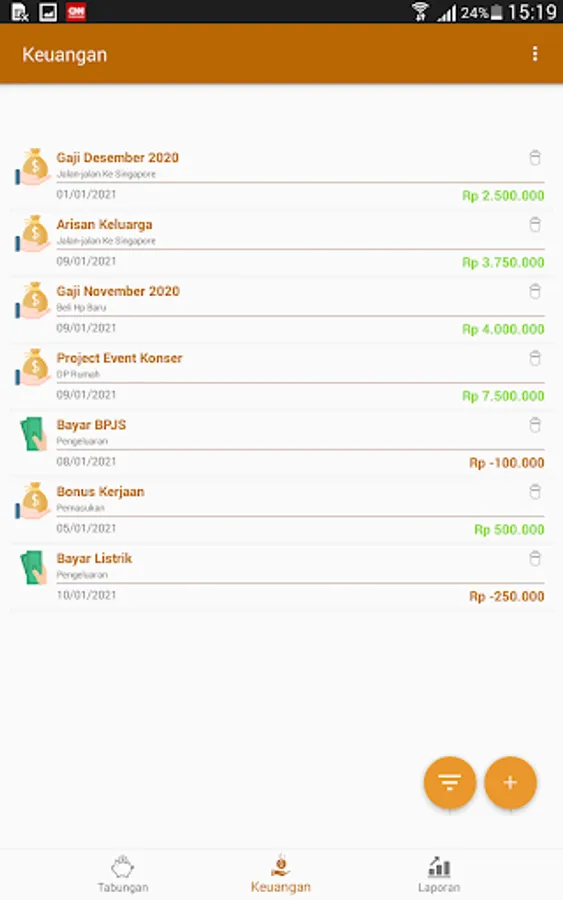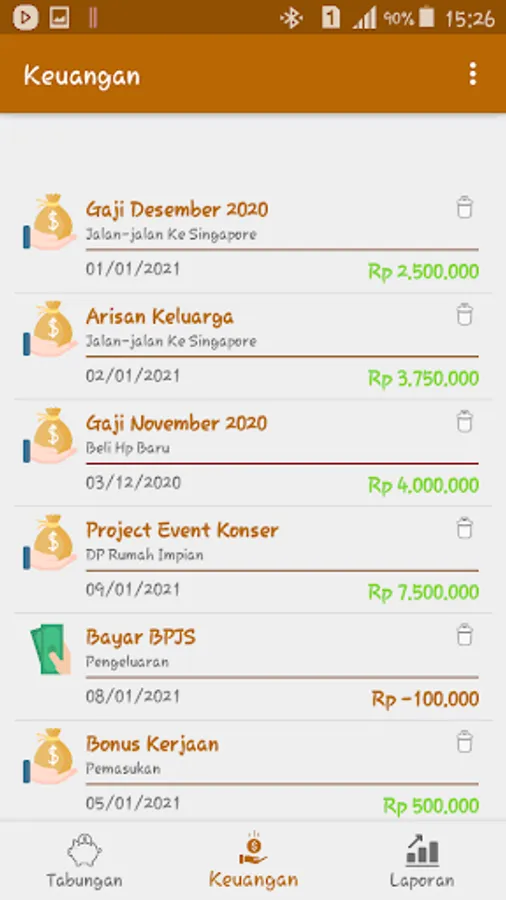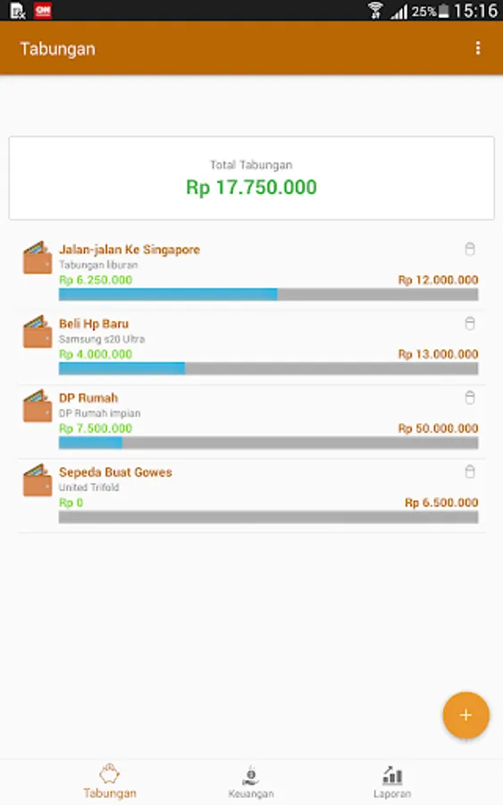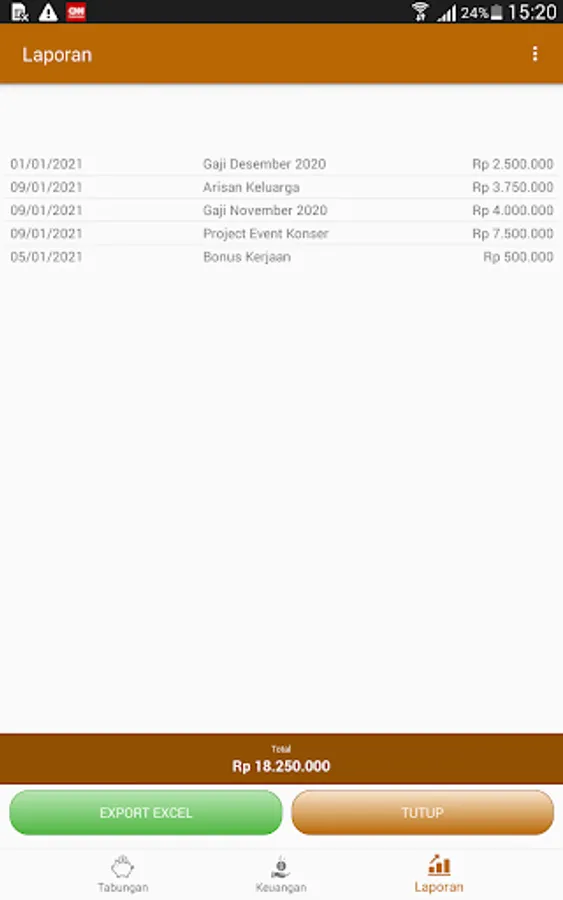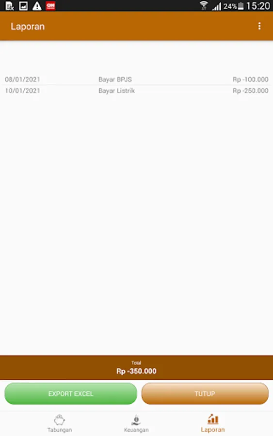 Apart from savings, it can also record daily income and expenses (not savings). Benefits obtained, can see expenses per day, week, or month, according to the period you want to display.