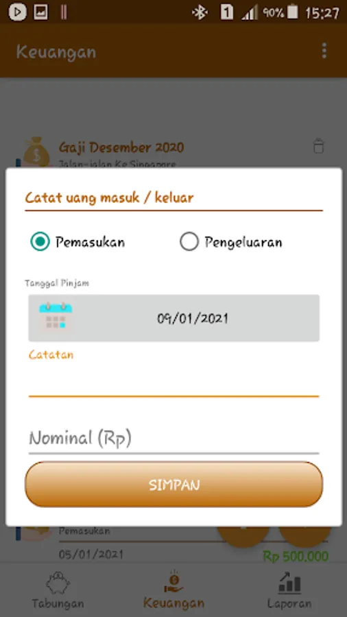 Adding types of savings, recording income and withdrawals of money in savings. Determine the desired savings target. The benefits you get can know the progress of the savings that are being saved.