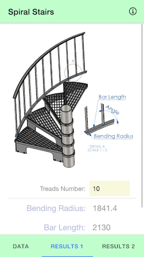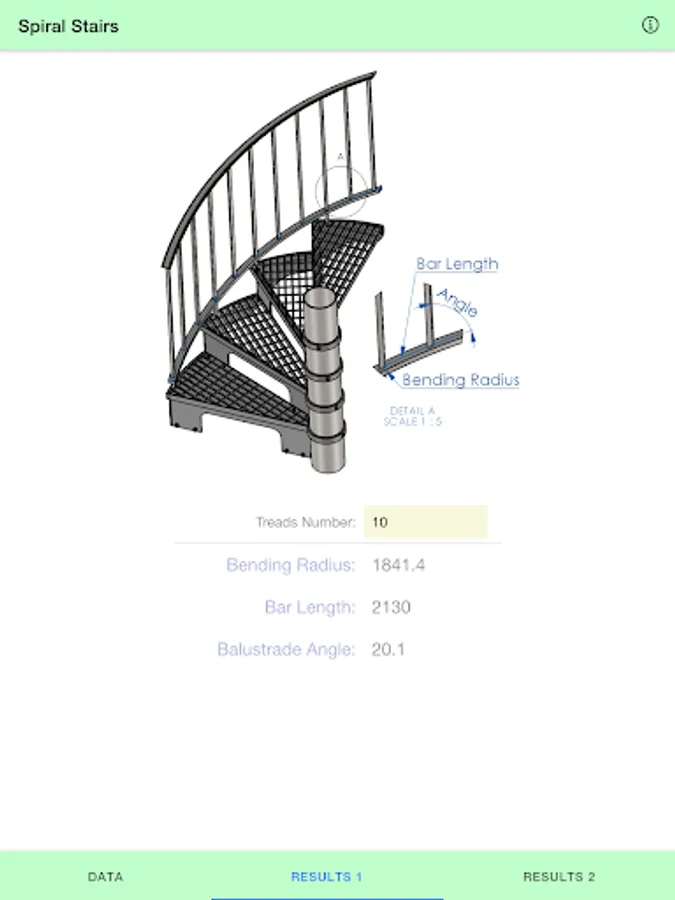 Just measure tread angle, tread rise, balustrade radius, and handrail diameter to get dimensions for making helical balustrade. Simple and very useful.