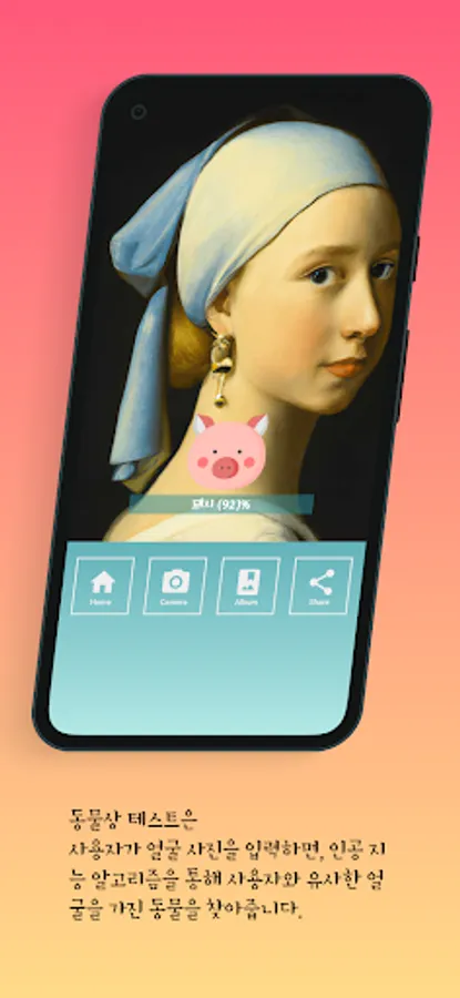 It is an app that finds animals that look similar to face photos in real time for fun.