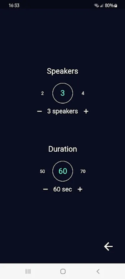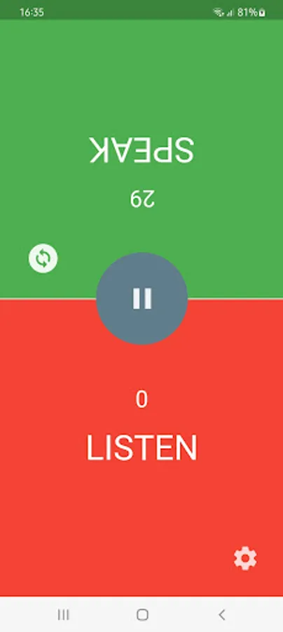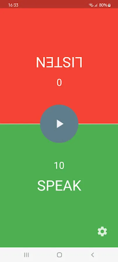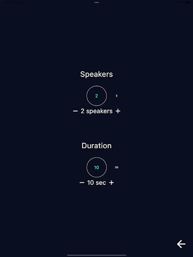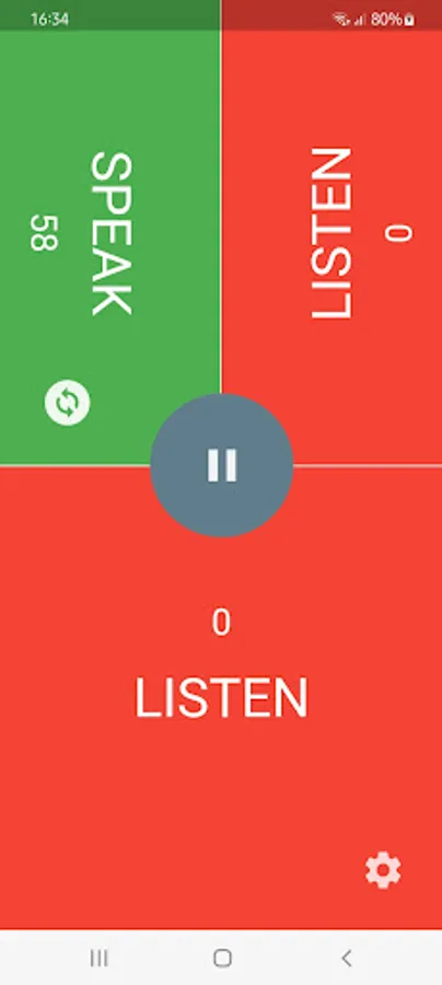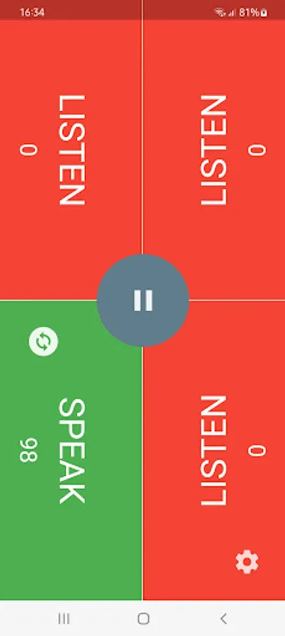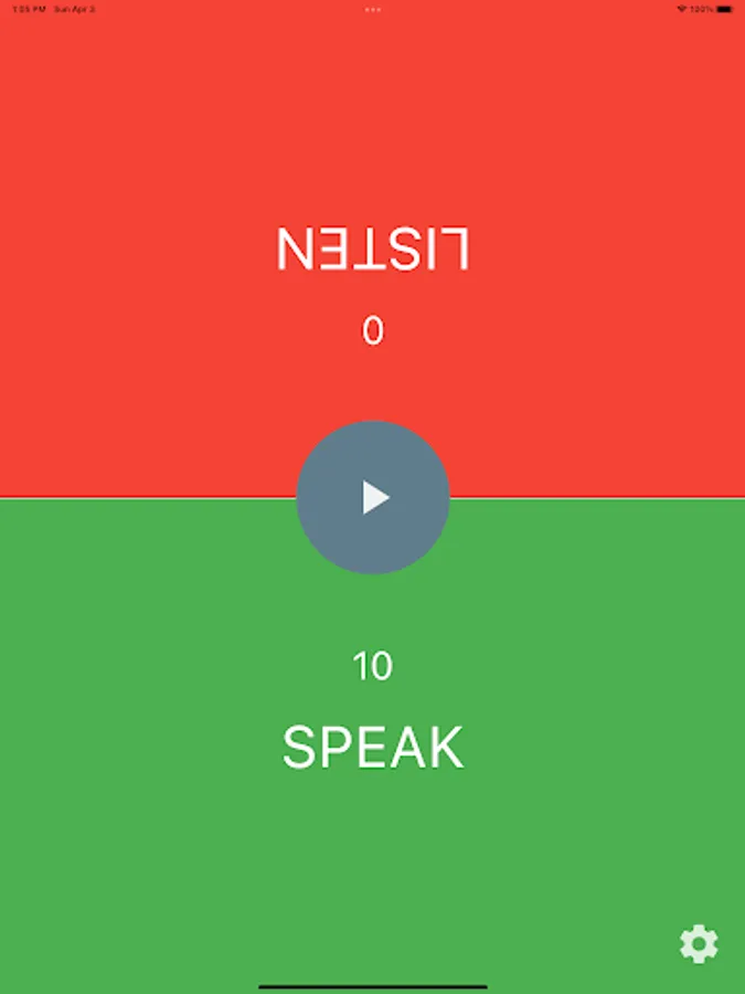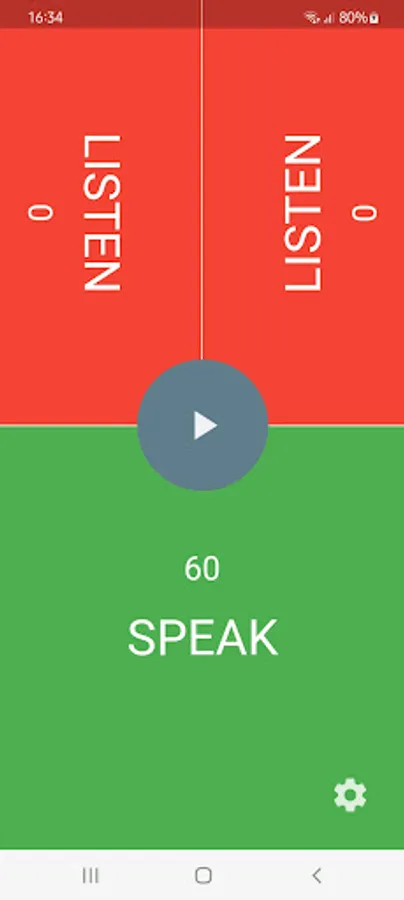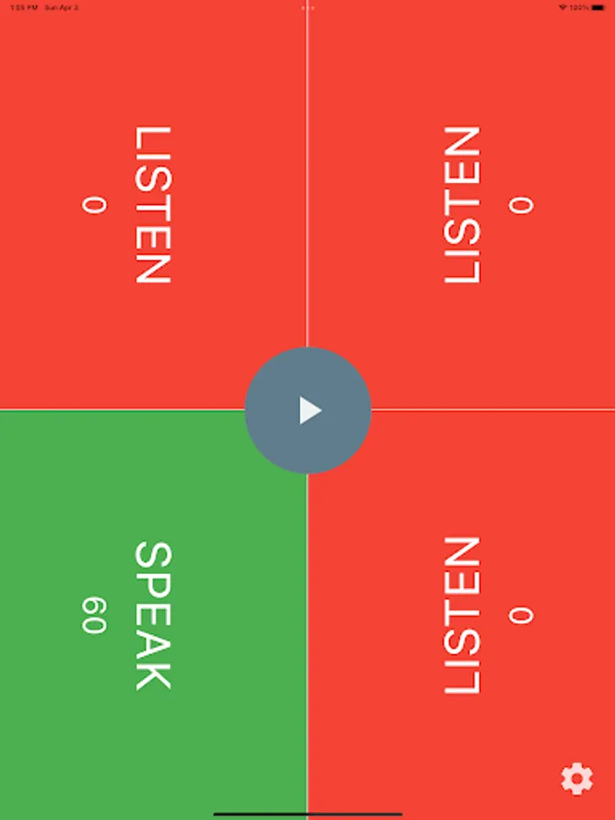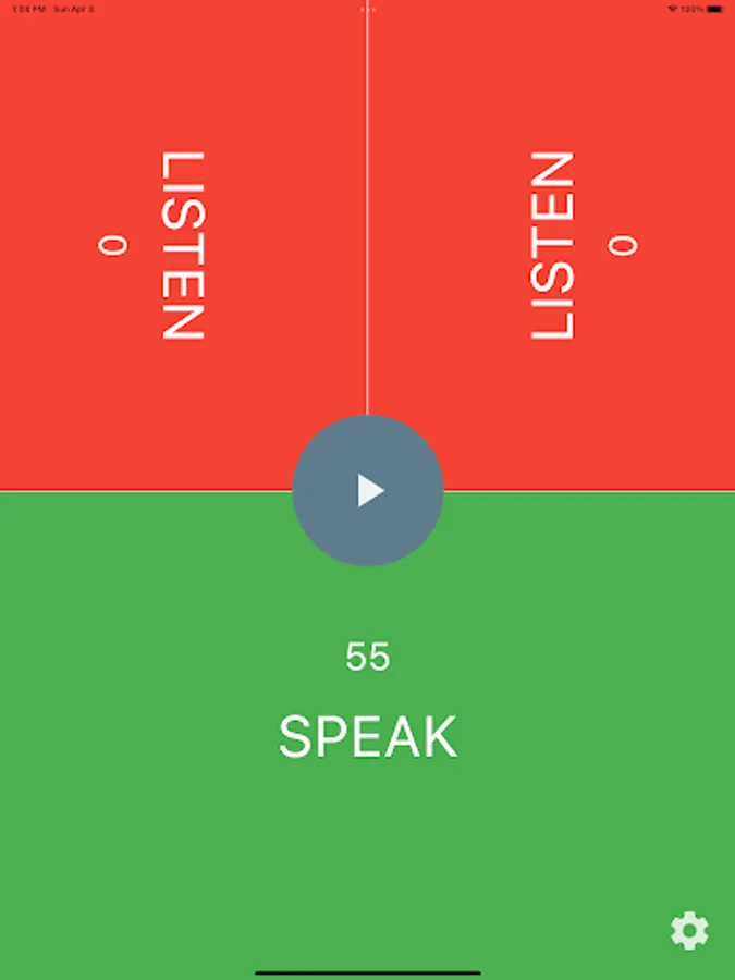 Place your smartphone in the center of the table and sit around it. Press the start button. Speak when your part of the screen is green and listen when it is red.