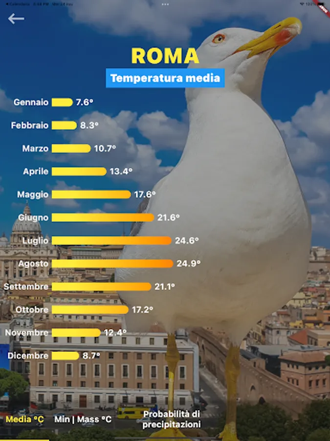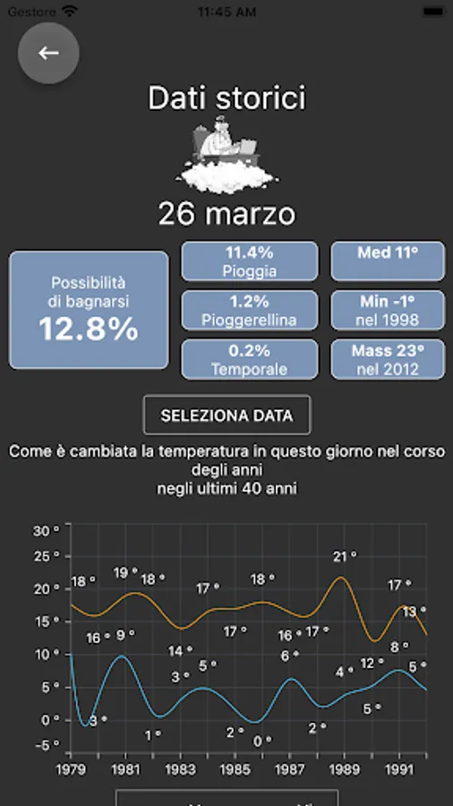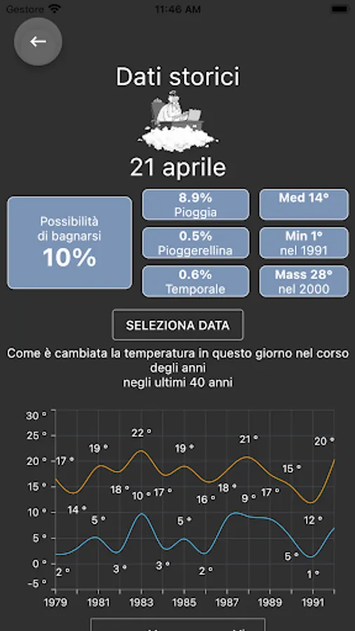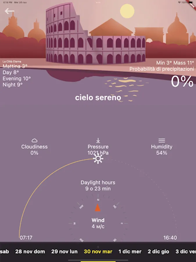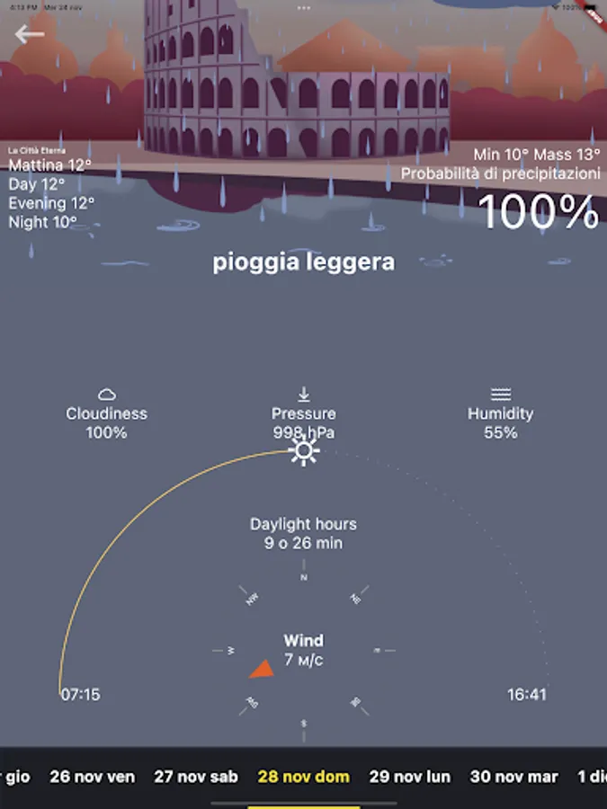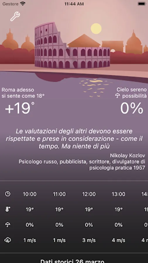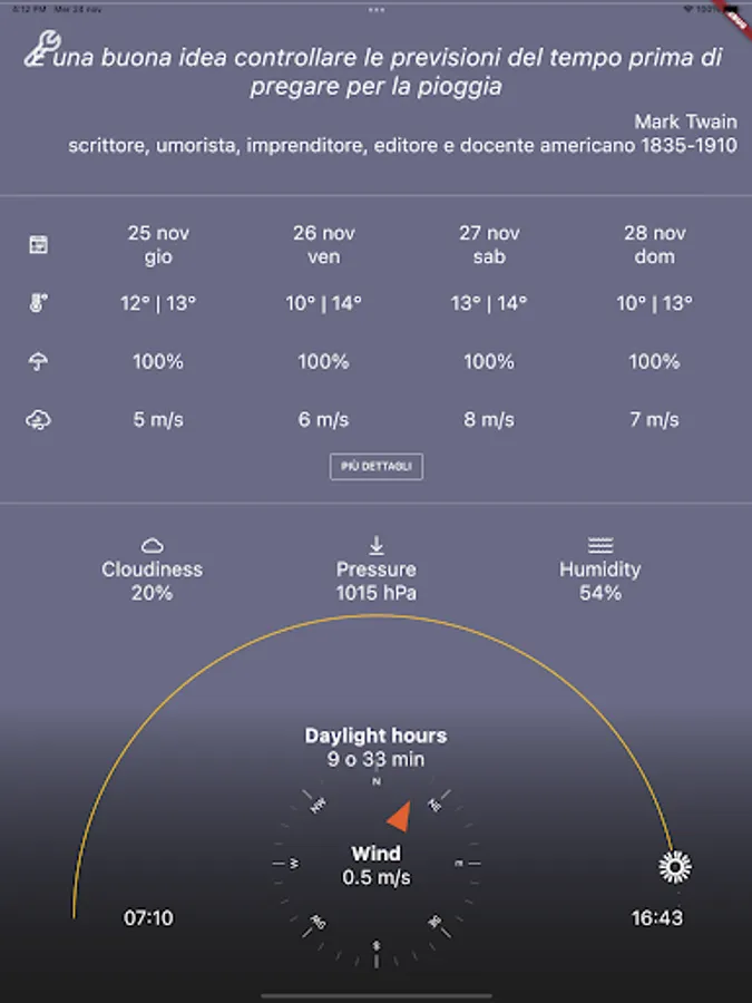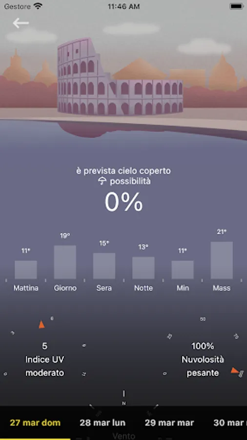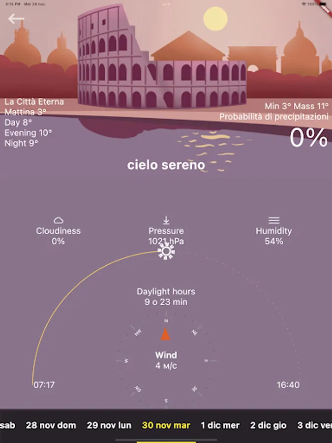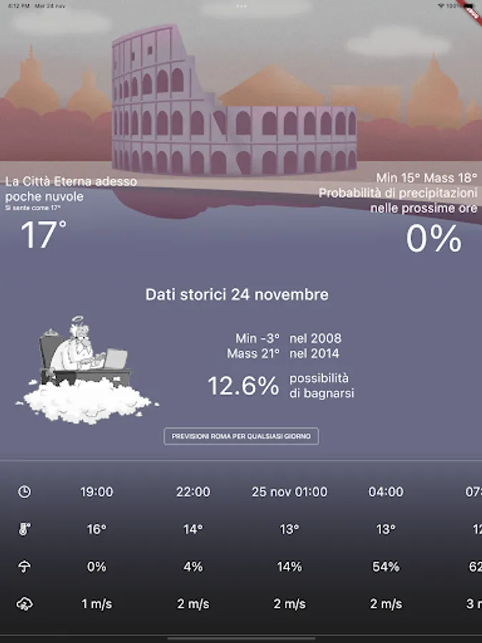 If you are not in Rome, the application will offer to show the weather forecast for your location.