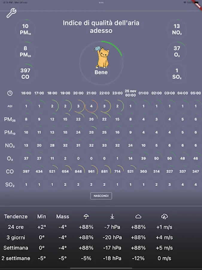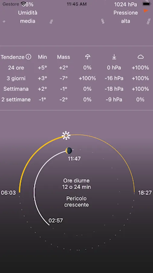 Trends. How the temperature, humidity, and probability of rain will change in a day, three days, a week, two weeks.