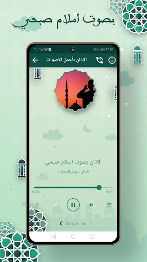The call to prayer program moves with a beautiful voice without the net for the background in the event a phone call is received and then continues listening after the call is finished.