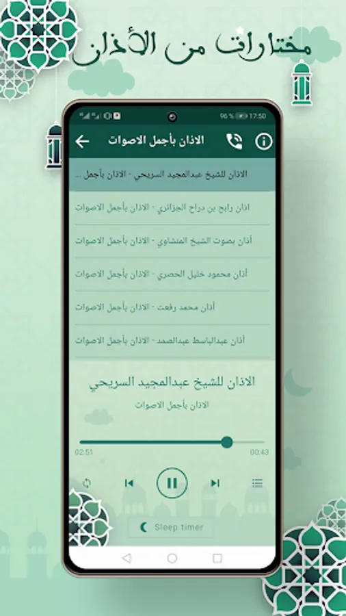 The possibility of listening to the call to prayer in the voice of Abdul Majeed Al-Suraihi without the net and working on the device at the same time.