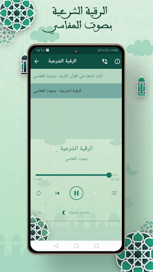 The transfer of the Afasy morning and evening remembrances without the net to the background in the event of a phone call, and then continue listening after the call is completed.