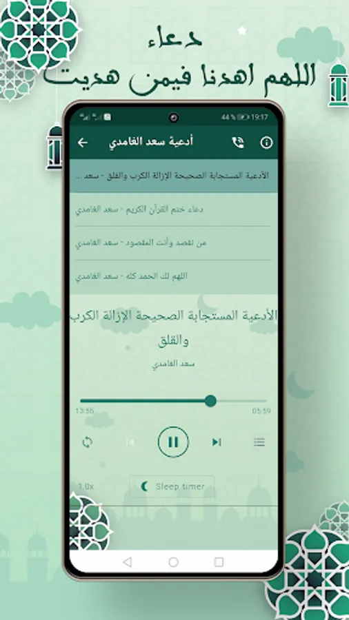 The application of the supplications of Saad Al-Ghamdi without the net goes to the background in the event that a phone call is received and then continue to listen after the call is completed.