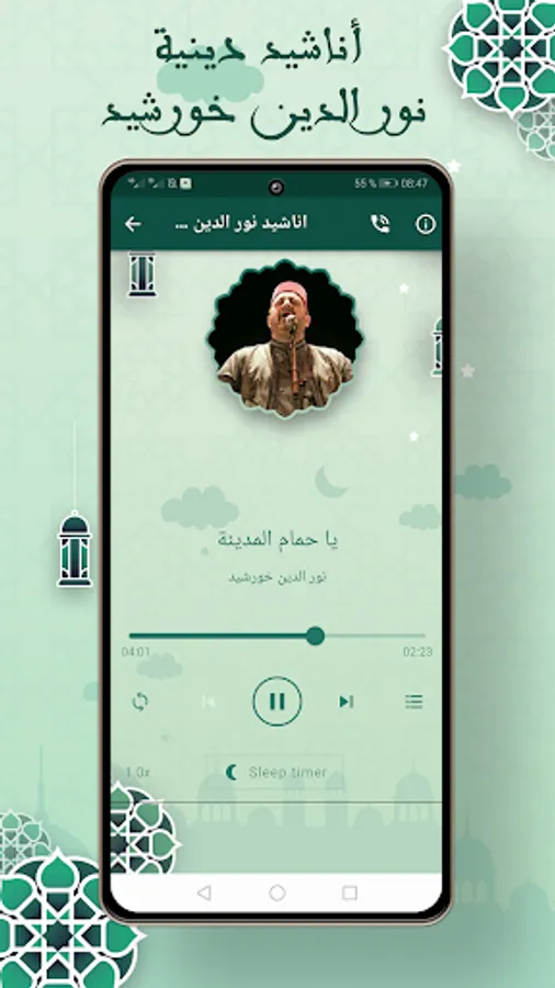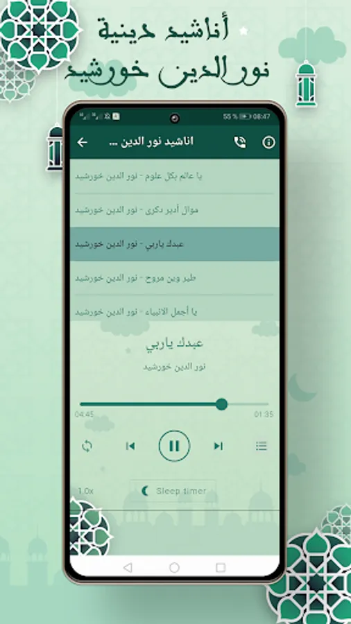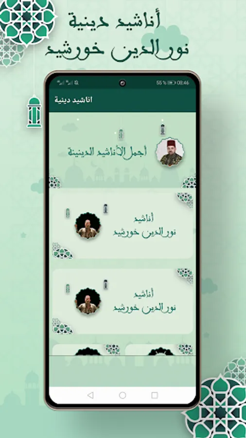The application of religious songs Noureddine Khurshid can be used at any time and anywhere without the need to connect to the Internet.
