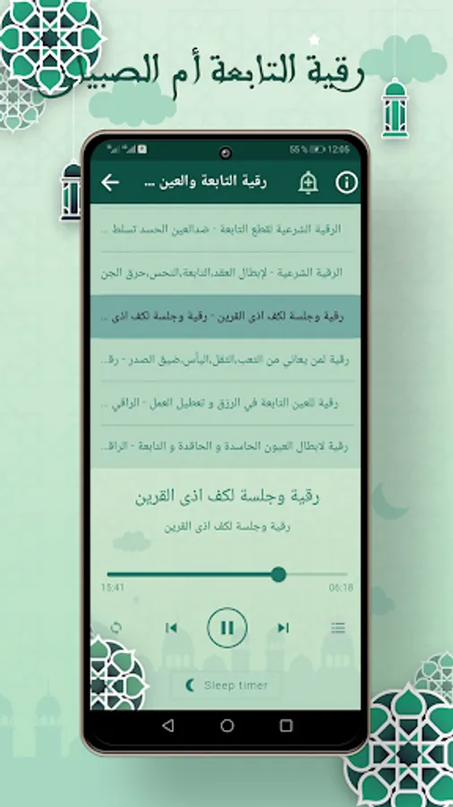 The application of a legitimate ruqyah for the eye, envy and magic without the net is transmitted to the background in the event that a phone call is received, then continue listening after completing the call.
