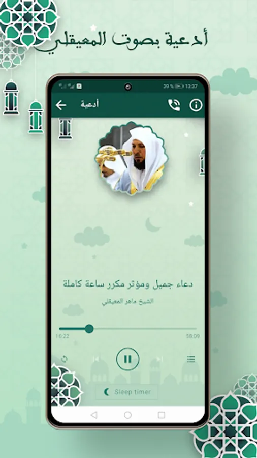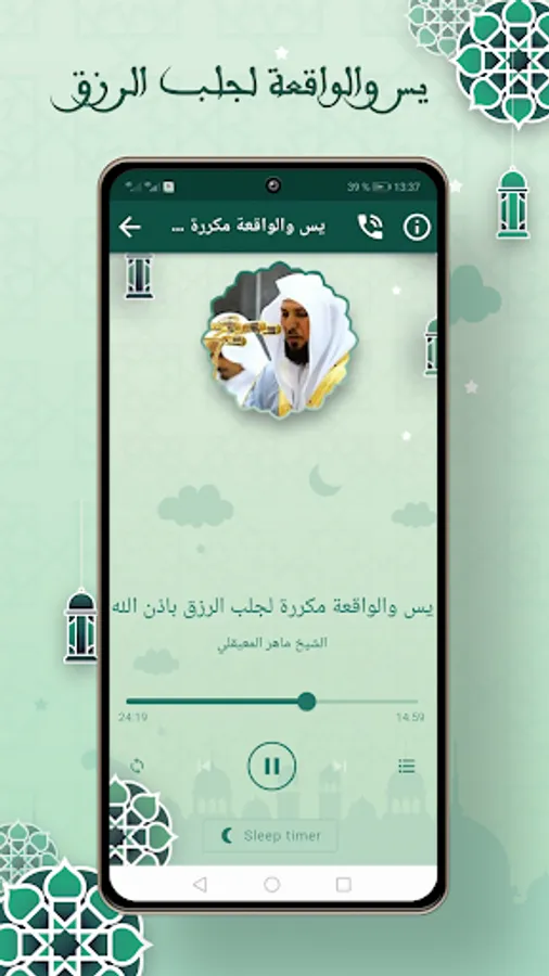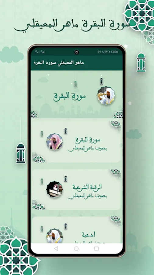 The application of Maher Al-Muaqili, Surat Al-Baqara, without the Internet for the background, in the event that a phone call is received, and then continue listening after the call is completed.