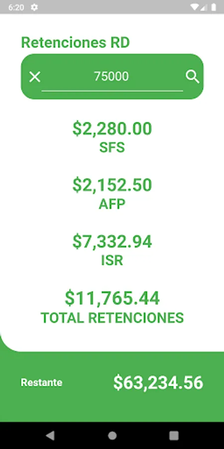 RD Withholdings, is a simple app that helps you know based on your gross monthly salary how much your employer will retain you from AFP (pension fund), SFS (family health insurance), ISR (income taxes).