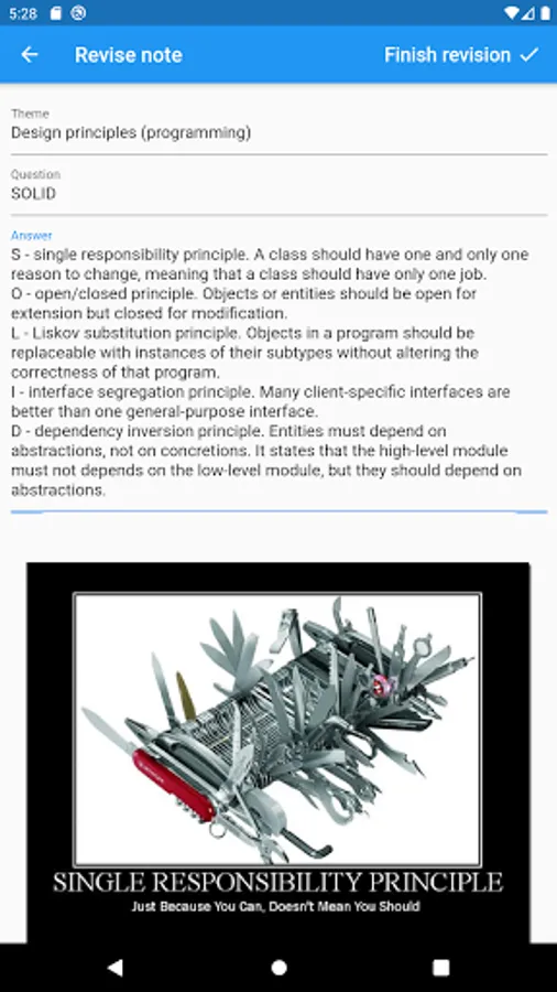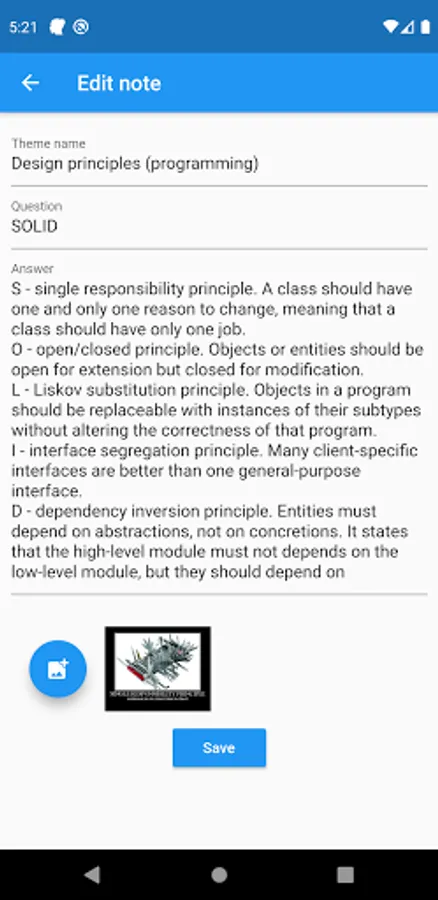 You can use the app for creating notes with information that you want to remember, or you can use this app as a reminder of learning some things that you need, for example, questions for the exam, job interview, words and rules of any language, or your favorite anecdotes ;)