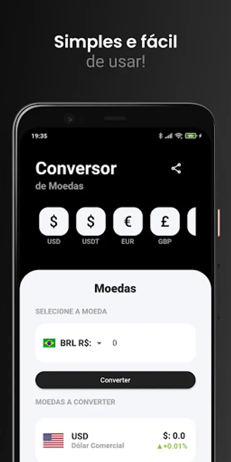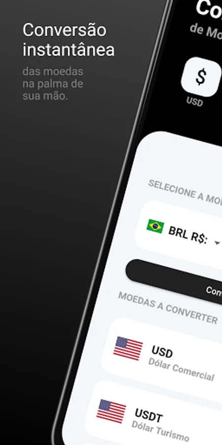 - Instant currency conversion (for example Dollar to Real)