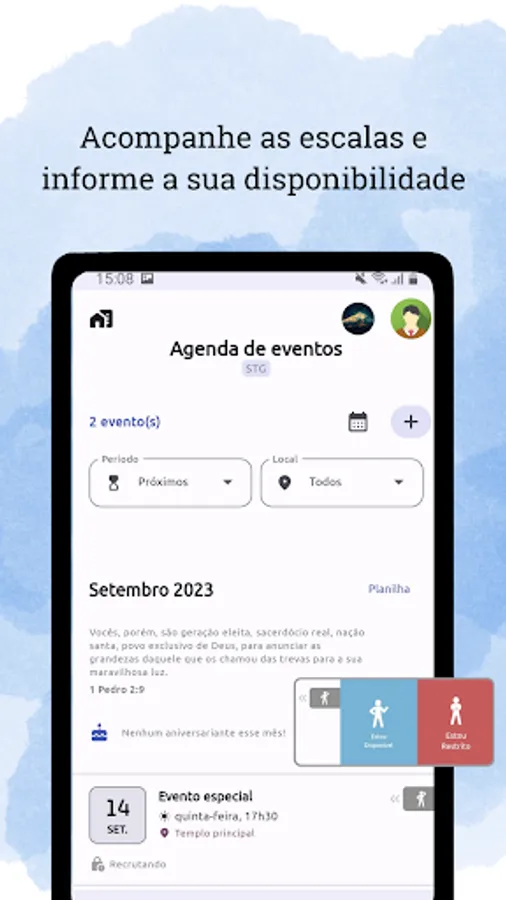An app to control the praise team schedule. This version is available to everyone, but with restrictions on the amount of daily access. Test and use in moderation. If the app doesn't work as expected, wait until the next day.