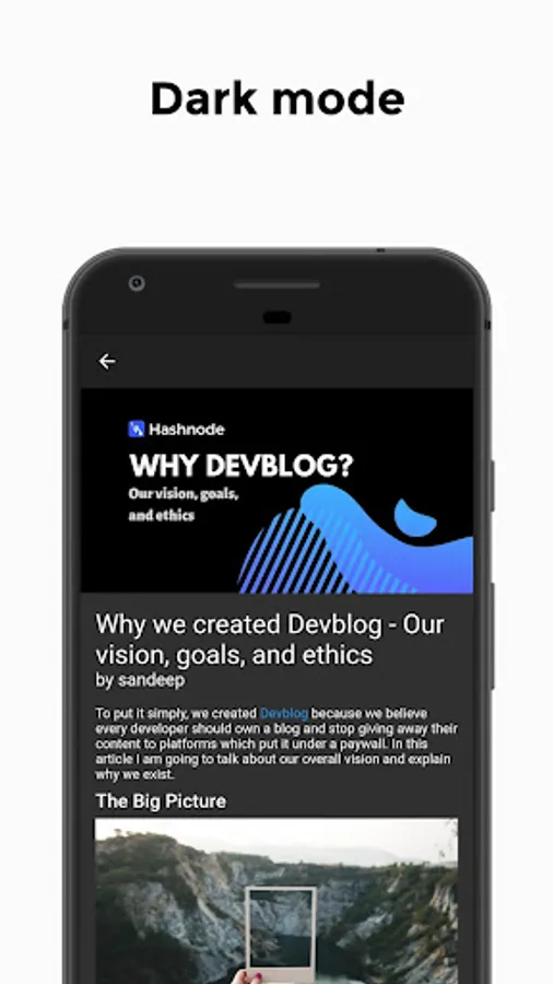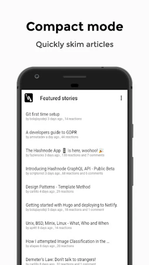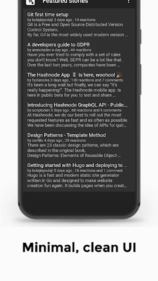 Hashnode Lite is Hashnode on a diet. It provides a fast, minimal UI and distraction free reading.