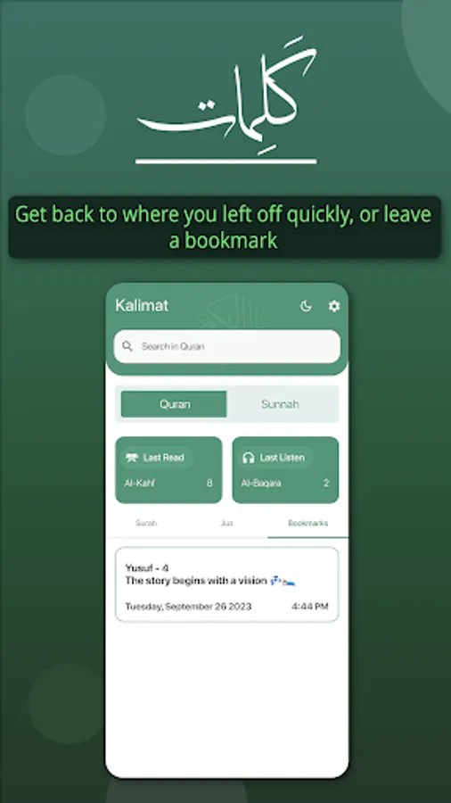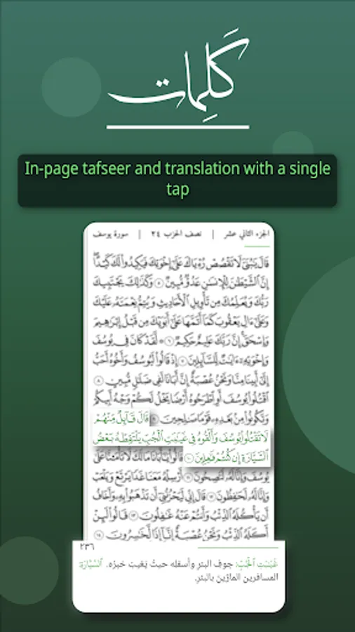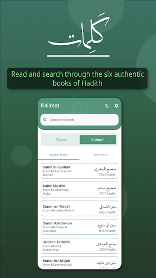 Kalimat is the perfect way to explore and learn about Islamic texts in the Holy Quran and Sunnah. Kalimat provides a unique way to get closer to the Quran by reading it in your own language.