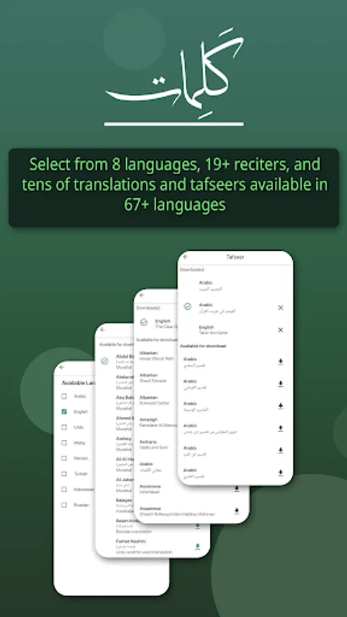 - Read the Quran in more than 70 languages, including Urdu, Turkish and Malay.