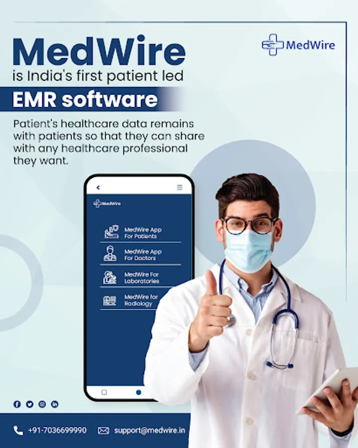 Founded in 2022, MedWire is Make in India’s first people led Electronic Medical Records (EMR) software. MedWire eliminates the burden of carrying stacks of medical files from hospital to hospital to simply having it all on your phone. We are creating a centralised hub by bringing together all Hospitals, Clinics, Medical Laboratories, Radiology facilities, across India to securely wire patient’s data to our cloud warehouse which is then accessible from anywhere and at any time. MedWire has created a unique technology for each of these healthcare entities to make EMR a norm to unfold India’s challenge to scattered medical data. We facilitate online booking of lab tests & radiology services in your local area. We also connect doctors from across the country to patients from the comfort of their homes.