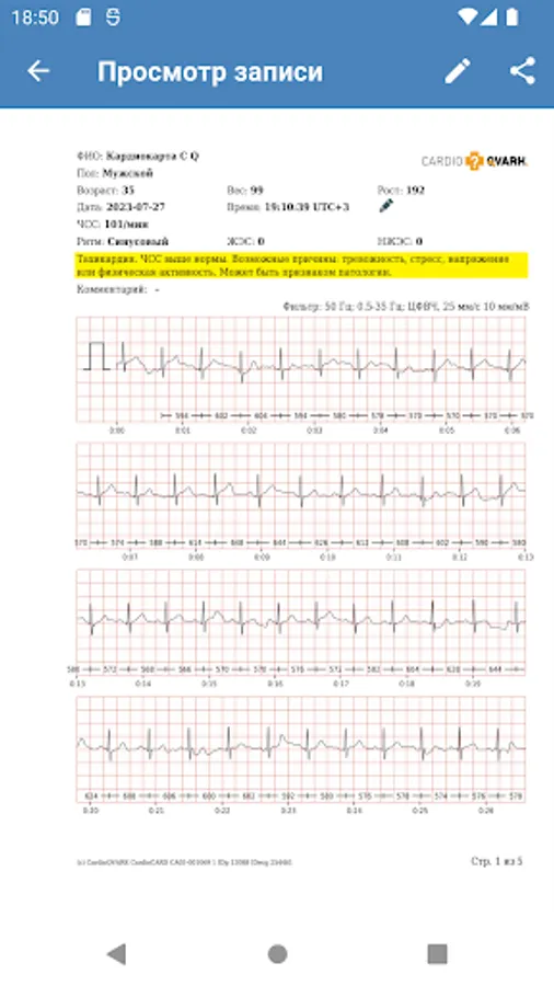 An application for working with a personal device for recording heart rate for non-medical purposes CardioCARD CardioQVARK.