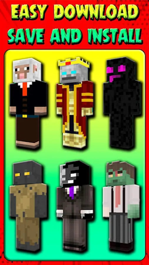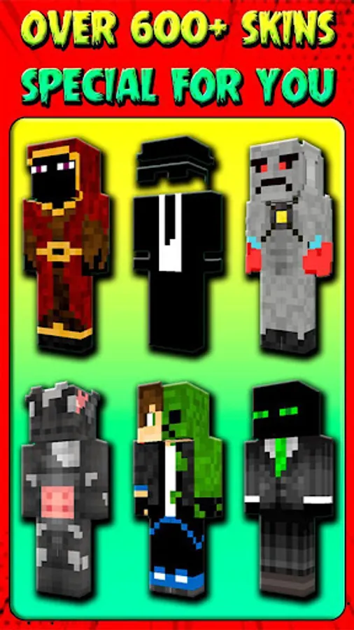 This application is for Minecraft fans, as well as for anyone who wants to diversify their gameplay. By downloading the Mob Skins for Minecraft PE, you will get a unique set of skins for your favorite game absolutely free. Especially for you, we have collected a huge collection of the best skins that will surprise not only you, but also your friends. Mob Skins are accessible to everyone and will suit everyone. Download skins, share with friends and have fun in multiplayer mode. Play with other players with the coolest skins!