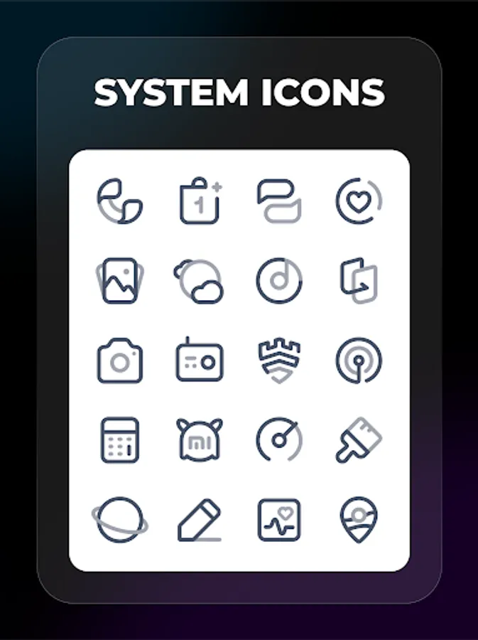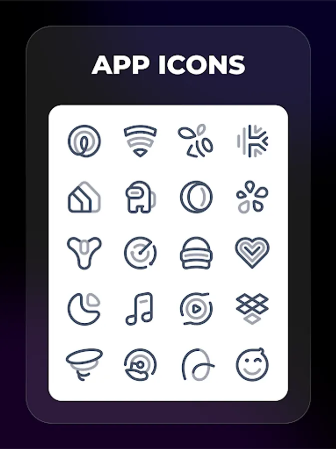 Dark outline icons with transparency. Matches the light wallpaper perfectly. One of the best and unique icon packs in its category
