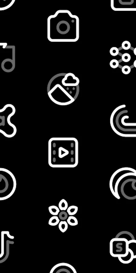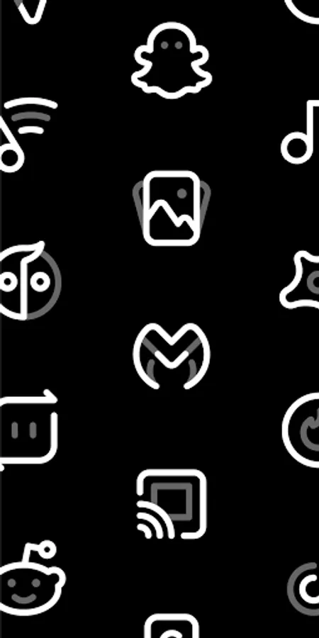 White outline icons with transparency. Matches the dark wallpaper perfectly. One of the best and unique icon packs in its category