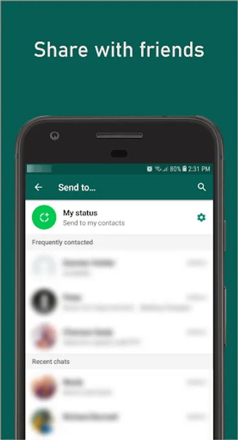 • Share your friend's WhatsApp Status photos and videos directly with individual WhatsApp contacts (or to any app of your choice).