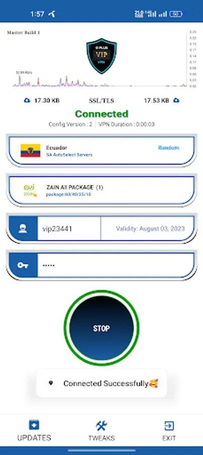 O PLUS VIP VPN is USER PASSWORD VPN service provider with several robust VPN protocols (UDP, TLS, TCP, HTTP, HTTPS, Openvpn, fast VPN connection. No further configuration is needed. With only one click CONNECTED , you can access any website and application