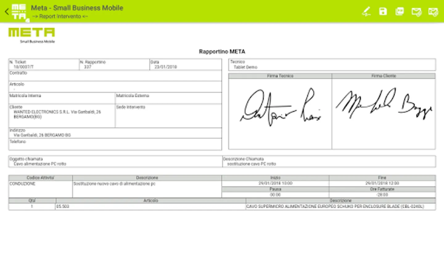 Free Download the App Demo of the META Technical Interventions and manage the Interventions and Service activities from any Android mobile device even without an Internet connection.