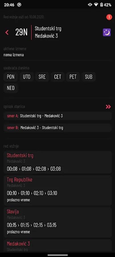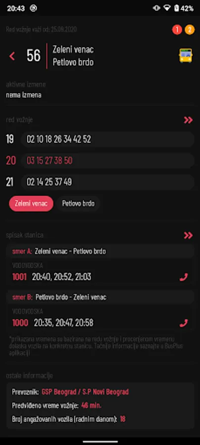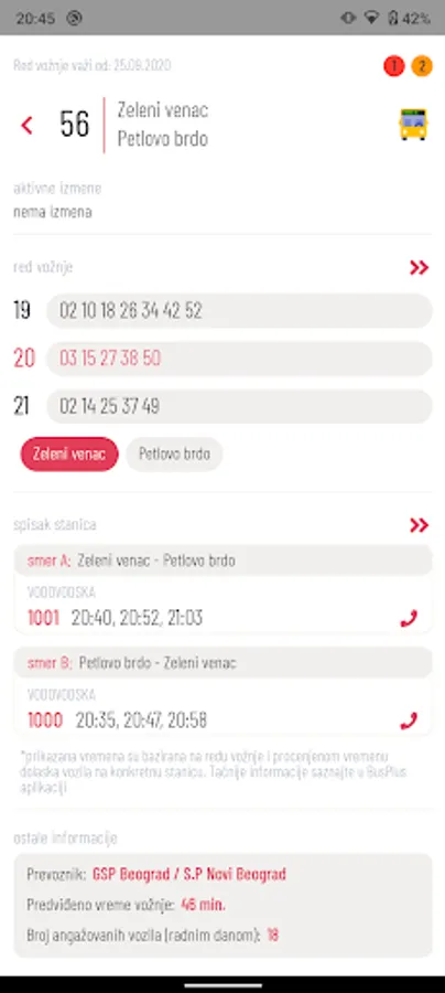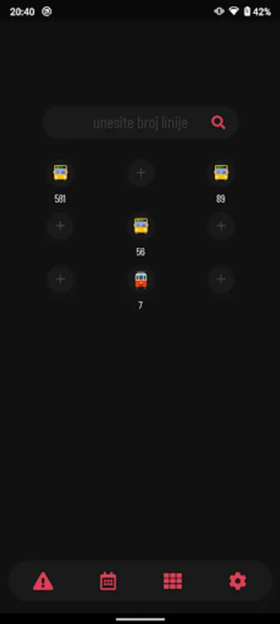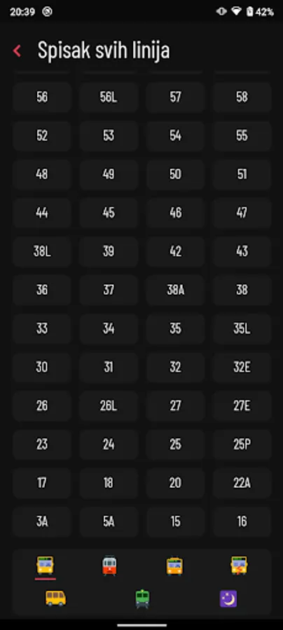 The application shows a list of lines and timetables of public transport for the city of Belgrade. Data is available for all urban and suburban transport lines. A timetable and a list of stations with estimated arrival times are available for each line. It is possible to record the most frequently used lines and stations. The following line types are supported: